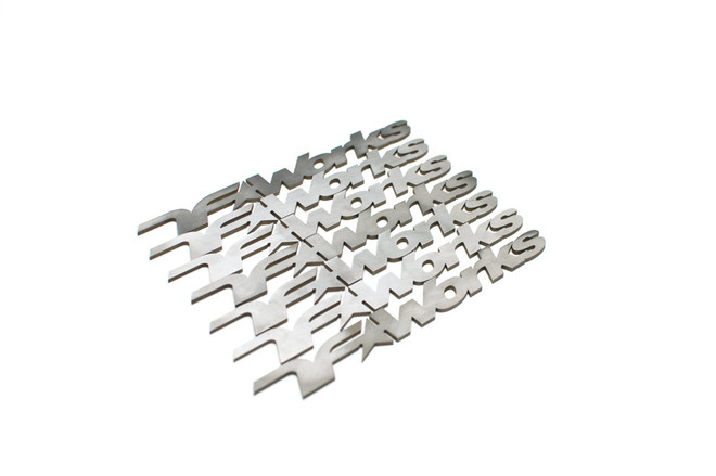 TF Works Stainless Steel Logo 2mm thick, 6inches wide. Can be used as an emblem, or welded onto other components.